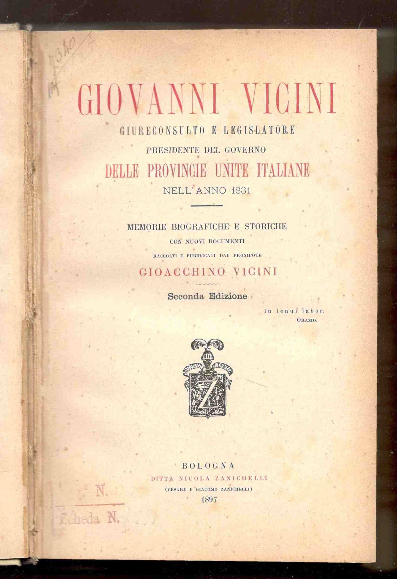 Giovanni Vicini giureconsulto e legislatore, presidente del governo delle Provincie Unite Italiane nell'anno 1831. Memorie biografiche e storiche coi nuovi con nuovi documenti raccolti e pubblicati dal pronipote Gioacchino Vicini