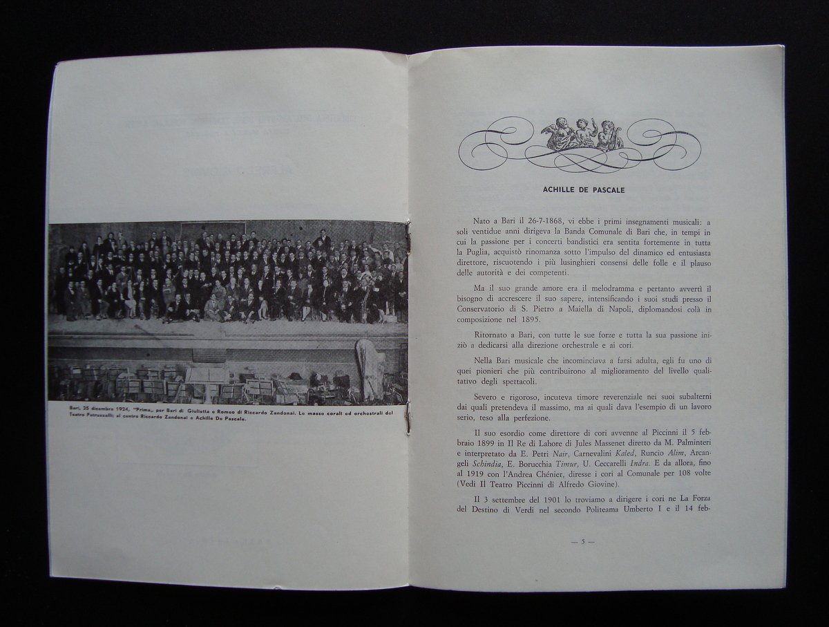 Alfredo Giovine, Achille De Pascali (Direttore barese di cori, maestro di canto e composizione) Cenni biografici e iconofrafia Biblioteca dell'Archivio delle Tradizioni Popolari, Bari, 1970, cm 24x17, pag.8, cart.ed.con ill fot.b/n.edizione curata. Condizioni di conservazione: Esemplare in buono stato con leggere tracce d'uso e del tempo, br.con qualche leggera brunitura ai margini; interni perfetti.TimbroOmaggio all'antiporta. OPEB.3357 BLU