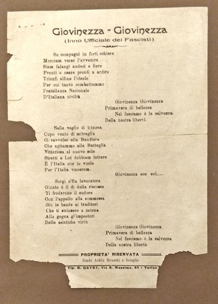 GIOVINEZZA GIOVINEZZA, Inno ufficiale dei Fascisti