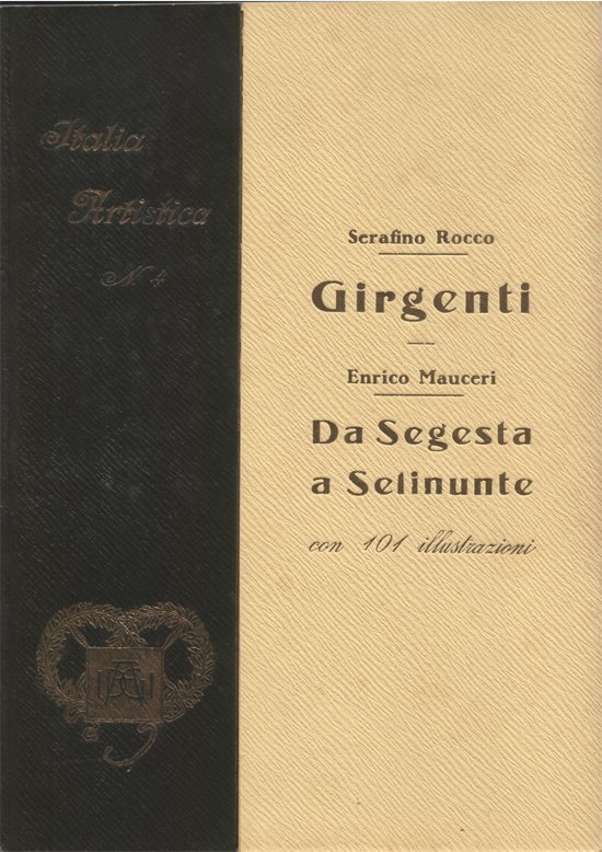 In-8° (cm 26,5x18,7), pp. 112, legatura editoriale in cartoncino con titoli in oro al piatto anteriore. Conservate la custodia editoriale in cartoncino e la sovraccoperta muta editoriale. Con illustrazioni fotografiche in bianco e nero. Piccoli segni d'umido al taglio anteriore, per il resto esemplare in ottimo stato di conservazione. Nella "Collezione di Monografie Illustrate" - Serie I.a - Italia Artistica, n. 4. Tra le località di cui si tratta nel volume, segnaliamo: Agrigento, Porto Empedocle, Alcamo, Calatafimi, Castelvetrano, Segesta, Selinunte.