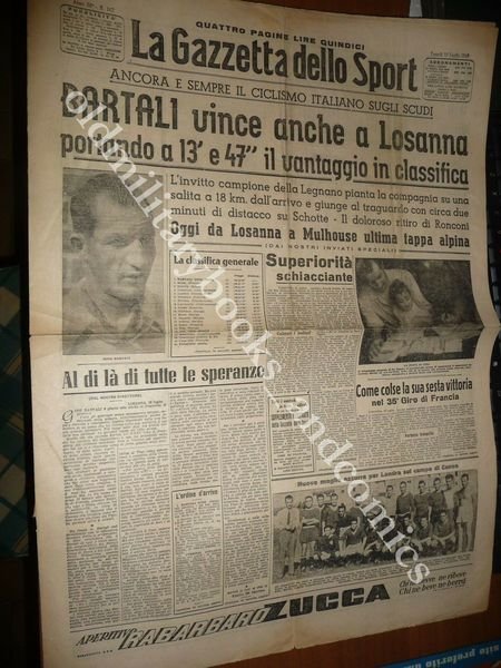 GIRO DI FRANCIA BARTALI VINCE A LOSANNA LA GAZZETTA DELLO SPORT 19/07/1948