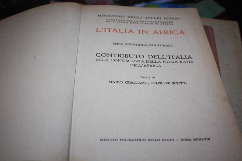 GIROLAMI MARIO-SCOTTI GIUSEPPE., CONTRIBUTO DELL'ITALIA ALLA CONOSCENZA DELLA NOSOGRAFIA DELL'AFRICA SERIE SCIENTIFICO-CULTURALE DE "L'ITALIA IN AFRICA", A, , POLIGRAFICO DELLO STATO, 1963 , , CODICE 4435