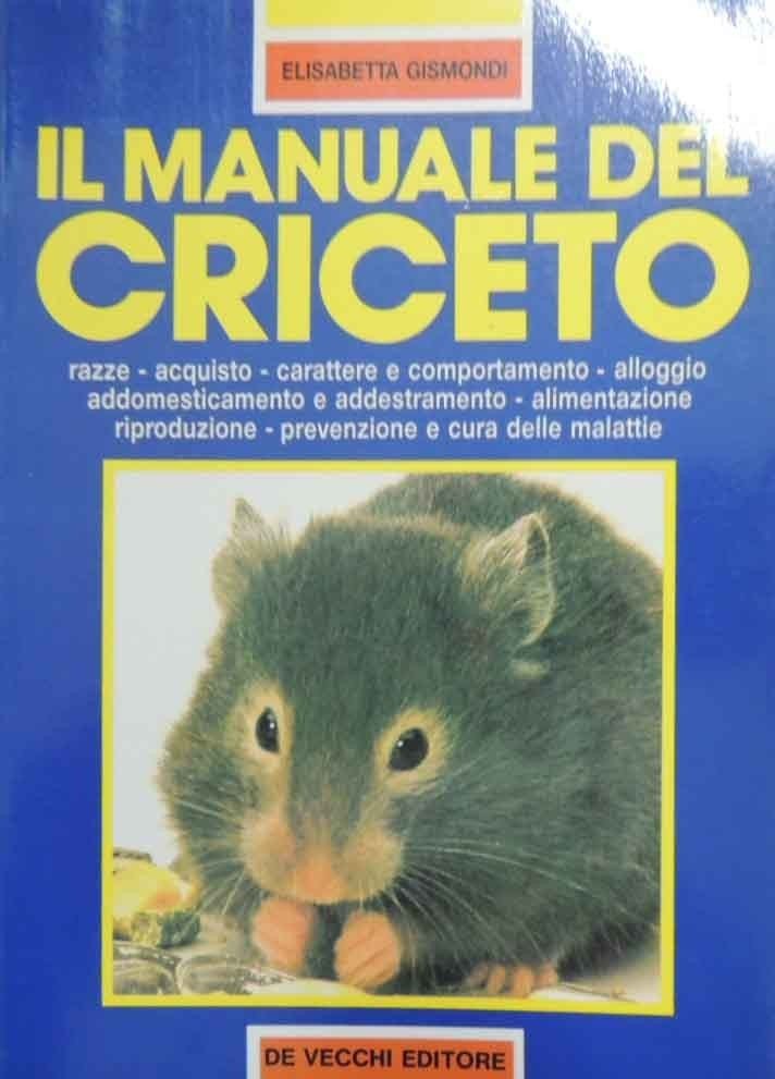 Elisabetta Gismondi, Il manuale del criceto. Razze, acquisto, carattere e comportamento, alloggio, addomesticamento e addestramento, alimentazione, riproduzione, prevenzione e cura delle malattie, Giovanni De Vecchi Editore, Milano 1999, nuova ed., pp. 154, ill. b.n., cm 20, br. ed. Minima ingiallitura della carta, per il resto perfetto.