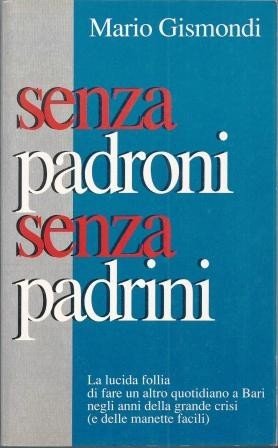 Mario Gismondi, Senza padroni senza padrini. La lucida follia di fare un altro quotidiano a Bari negli anni della grande crisi (e delle manette facili), Edizioni Cooperativa Olimpico, s.l. (ma stampato a Castelmadama, presso la 2001 Grafica System) 1991, pp. 349, cm 21, br. ed. Supplemento al quotidiano Puglia. Il volume racconta i primi dieci anni di vita del quotidiano Puglia, fondato da Mario Gismondi nel 1979.
