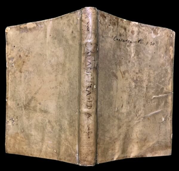 In 8° piccolo (14,3×10 cm); 54, (2 b.), 48 (ma 40), (1 b.) cc. Legatura seicentesca in piena pergamena floscia con titolo manoscritto da mano coeva al dorso. Nota manoscritta ottocentesca al piatto anteriore Cavalcanti 2-50. Alcune numeri manoscritti da mano cinquecentesca al frontespizio, ininfluenti. Grande stemma xilografico di Luigi Mocenigo, in ognuno dei due frontespizi. Iniziali xilografiche. Le c.33-40 saltate nella numerazione delle p. della pt. 2 come in tutti gli esemplari conosciuti. Alcuni leggerissimi aloni in 4 pagine, del tutto ininfluenti e nel complesso, esemplare in buone-ottime condizioni di conservazione. In alcuni esemplari, la tragedia Canace, precede il testo del Giudicio. Alcune copie presentano una variante nel titolo con Giuditio al posto di Giudicio. Il Giudicio è opera di G.B. Giraldi anche se a volte, è attribuita anche a B. Cavalcanti (cfr. Sperone Speroni. Canace a cura di C. Roaf Bolonga, 1982 pp. XXIII-XXIX). Lopera non presenta lo stampatore ma lSTC Italian p. 636, attribuisce la stessa, probabilmente, ai torchi di Domenico Farri. Prima edizione del più celebre commento della più importante e controversa opera del grande scrittore e filosofo padovano, Sperone Speroni (Padova, 12 aprile 1500 Padova, 2 giugno 1588). Nato in una celebre famiglia nobile podovana, Speroni degli Alvarotti, il padre Bernardino era archiatra di Papa Leone X, mentre la madre apparteneva alla famiglia Contarini. Considerato un bambino prodigio per le sue capacità dapprendimento, divenne giovanissimo, a 18 anni, professore di Logica allUniversità di Padova. Allievo di Pomponazzi a Bologna, ritornò a Padova dopo la morte di questi, prima per insegnare e poi, per necessità, per seguire gli affari di famiglia. Membro dellAccademia degli Infiammati, fu lultimo dei Principi del quali ci rimane testimonianza scritta, succedendo alla carica ad Allessandro Piccolomini. Fu grande amico di Torquato Tasso del quale revisionò, anche, la Gerusalemme Liberata. La Canace è una commedia di interesse mitologico, che venne letta, per la prima volta da Giraldi, nelladunanza dellAccademia degli Infiammati. Come scrisse Luca Piantoni (Dizionario Biografico degli Italiani, Treccani, Volume 93, voce dedicata a Sperone Speroni) Canace, composta a stretto giro dallOrbecche di Giovan Battista Giraldi tra il 9 gennaio e il 9 marzo 1541 e pubblicata la prima volta a Venezia, senza consenso dellautore, nel 1546. Lopera, la cui rappresentazione fu impedita dallimprovvisa morte di Ruzante, che doveva esserne il principale interprete (Savarese, 1976), sollevò ben presto aspre polemiche, che si protrassero sin quasi alla fine del secolo (con i Due discorsi di Faustino Summo del 1590). Salutata con tempestivo favore da Aretino e Claudio Tolomei, come pure, successivamente, celebrata da Lodovico Dolce e Battista Guarini, essa venne attaccata, sulle prime, a mezzo di un manoscritto anonimo, datato 5 luglio 1543 e a lungo ritenuto di Bartolomeo Cavalcanti, ma da attribuire quasi certamente allo stesso Giraldi (Roaf, 1959); poi nel 1550, con il titolo di Giudizio sopra la tragedia, per i tipi di Vincenzo Busdraghi di Lucca, che vi annesse anche il testo della Canace. Speroni, sollecitato a rispondere con unApologia indirizzata ad Alfonso II dEste, rimasta però incompiuta, tornò a difendersi con un ciclo di lezioni tenute, tra il 9 e il 27 dicembre 1558, nel consesso degli accademici Elevati, dove venne fatta pervenire unulteriore risposta, questa volta in latino e con la firma di Giraldi. La disputa sulle caratteristiche della tragedia che prese avvio dalla Canace di Speroni, coinvolse la maggior parte i letterati italiani e proseguì per più di dieci anni. Lopera venne anche castigata per la sua lascivia per il modo in cui, Speroni, utilizzò il tema dellincesto come strumento narrativo. Rif. Bibl.: Fontanini, I, p. 507. L1065; Gamba 1653.