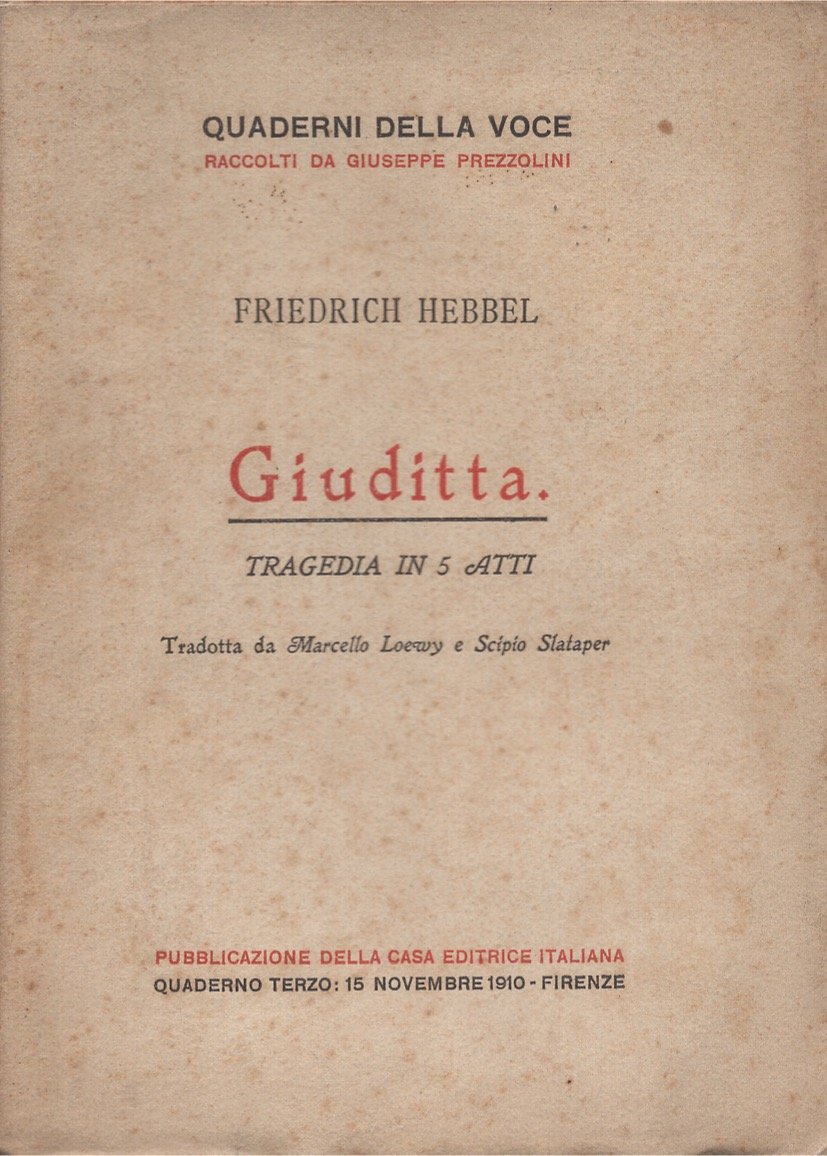 Tragedia in 5 atti tradotta da Marcello Loewy e Scipio Slataper. Quaderno terzo: 15 Novembre 1910
