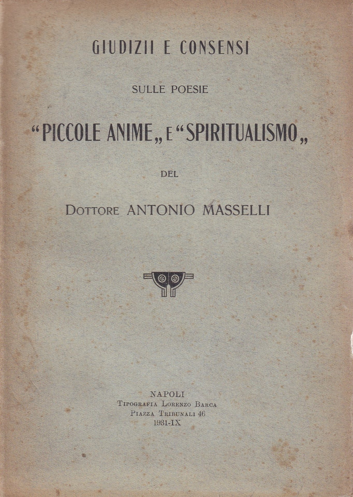 *Giudizii e consensi sulle poesie Piccole Anime e Spiritualismo del Dottore Antonio Masselli.