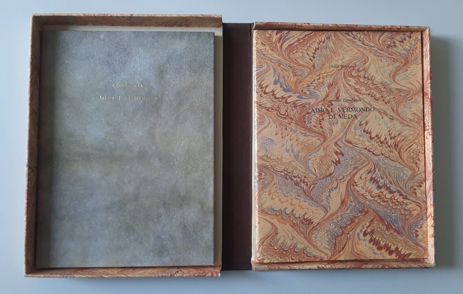 GIULIA BOLOGNA LEGGENDA DI AIMO E VERMONDO DI MEDAIn 4°, 2 volumi, legatura editoriale, copertina e cofanetto illustrati, ill. a colori.Lievissimi segni alla custodia, pagine fresche e pulite.