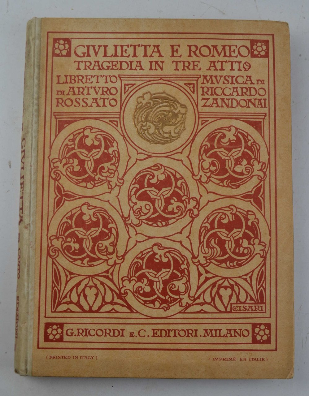Cm. 27,5, pp. (12) 339 (1). Ritratto di Zandonai all'antiporta. Bella legatura in cart. rigido interamente decorato. Ottimo stato di conservazione.