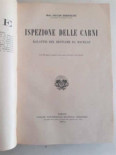 Giulio Bertolini Ispezione delle carni malattie del bestiame da macello UTET 1931