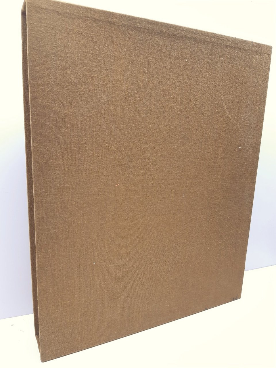 cofanetto rigido in tela marrone con alcune sporcizie e aloni, sovraccoperta editoriale con lievi segni del tempo, una piccola mancanza al margine superiore del dorso, legatura rigida in tela marrone con titoli in oro al piatto anteriore e al dorso, fogli di guardia con lieve ossidazione dovuta alla l'interno della sovraccoperta, interno in buono stato numerose immagini in bianco e nero e a colori al testo, pagine non numerate dimensioni cm 32 x 26,5 x 4