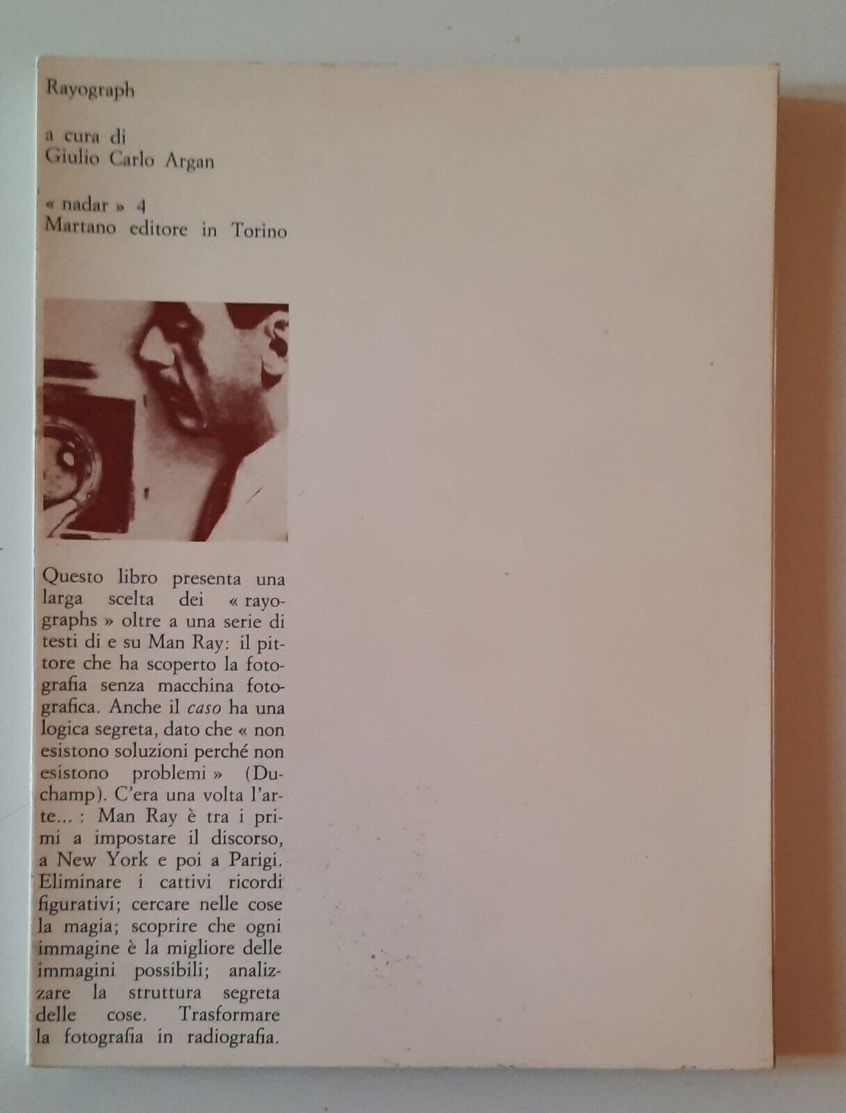 GIULIO CARLO ARGAN RAYOGRAPH MARTANO EDITORE NADAR 1970