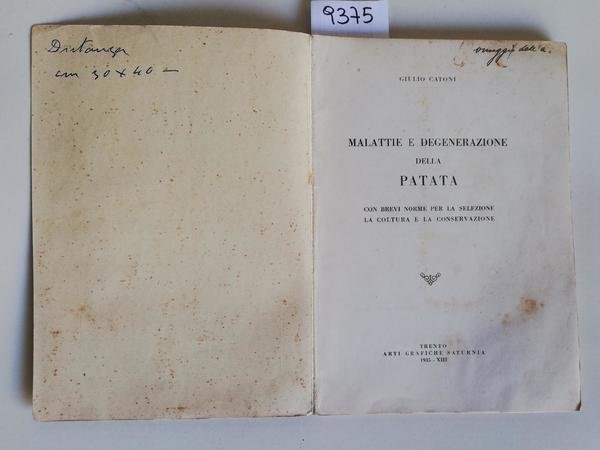 Giulio Catoni Malattie e Degenerazione della patata 1935 Arti Grafiche Saturnia