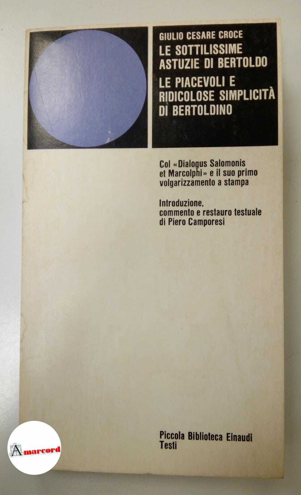 870 Giulio Cesare Croce. Giulio Cesare Croce. Le sottilissime astuzie di Bertoldo. Le piacevoli e ridicolose simplicità di Bertoldino, Einaudi, 1978.. Torino, Einaudi 1978 italiano, in sedicesimo 235 22311