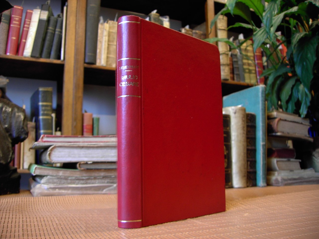 Volume in 8, legato in similpelle, titolo al dorso, sguardia, brossura originale, frontespizio, avvertenza, occhiello, 187 pp., bianche finali. Bella edizione in prosa italiana a cura di Carlo Rusconi con testo inglese a fronte. Shakspeare tolse dalle vite di Cesare, Antonio e Bruto, scritte da Plutarco, l'argomento di questa tragedia sulla quale i critici si accordarono a dire essere incerto se dovesse ammirarsi di pi l'esattezza storica o l'ispirazione poetica. A parte una rara e sporadica fioritura della carta, in bello stato, di piacevole lettura.