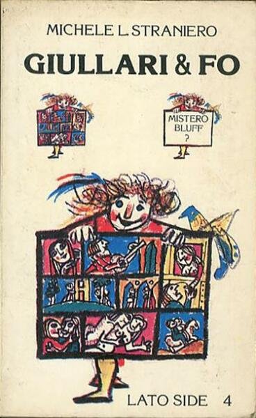 160 p. ; 19 x 12 cm. Lato side, 4. «Giullari e Fo» si colloca in equilibrio instabile fra le muffe gentiliane della scuola dell'obbligo e l'obbligo di una scuola ancora tutta da costruire. Straniero discorre di San Francesco, Jacopone, Angiolieri muovendosi all'interno di riferimenti eterogenei, come d'uso tra persone non traumatizzate dallo specialismo; l'estrema linearità dei giudizi non sovraccarichi di nulla e perciò incridibilmente essenziali ci riportano al gusto del conoscere ridimensionando la funzione della polemica, dell'ironia, dell'erudizione, cavalli di battaglia di una non sempre efficace alternativa alla cultura cosiddetta ufficiale che poi altro non è che la storia della nostra civiltà, magari proposta in maniera non atta a farsi recepire e quindi giustamente invisa alle giovani generazioni. Copertina di Emanuele Luzzati. Brossura editoriale, coperta illustrata a colori in cartoncino flessibile plastificato lucido. Qualche segno del tempo ai tagli e alle pagine interne (ingiallimento della carta), per il resto esemplare integro. Codice libreria 7337.