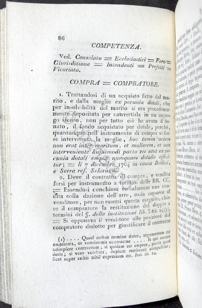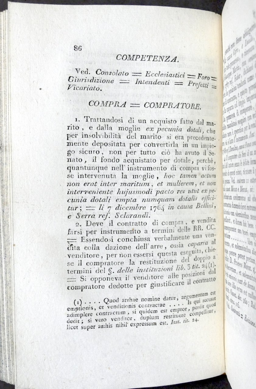 Giurisprudenza patria ossia raccolta di casi decisi e massime assentate dai supremi magistrati degli stati di S.S.R.M. il re di Sardegna posta per ordine alfabetico Torino, presso Domenico Orgeas librajo, 1815 Pag. VII, [1], 511, [1] Legatura in mezza pelle - Testo in italiano. Condizioni generali molto buone.