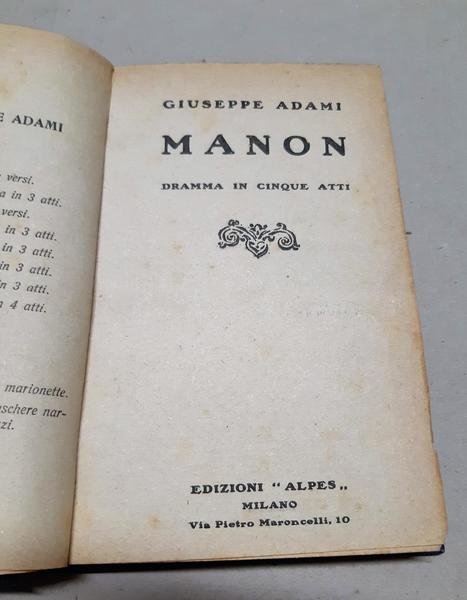 Giuseppe Adami Manon dramma in cinque atti Alpes 1922