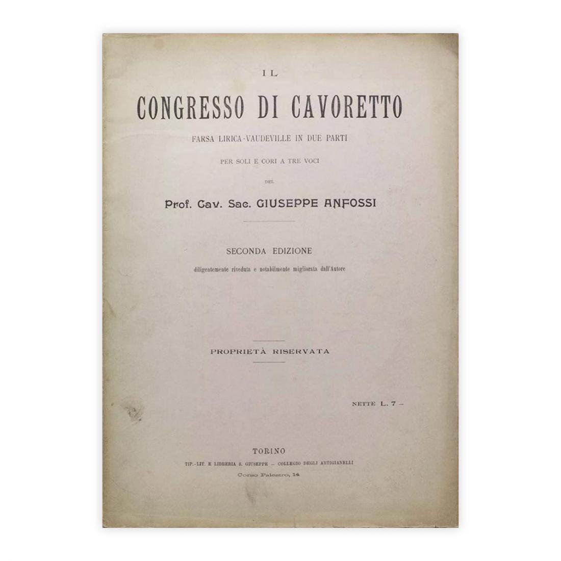 Autore: Giuseppe Anfossi Titolo: Il Congresso di Cavoretto Sottotitolo: Farsa Lirica - Vaudeville in due parti per soli e cori a tre voci Edizione: Tipografia e Libreria S. Giuseppe - Torino Dimensioni: 34,5 x 25 cm c.a. Copertina: Brossura Condizioni: Buone come da foto