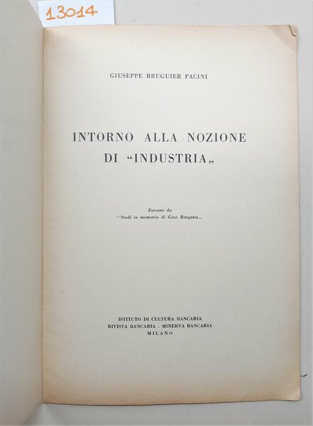 Giuseppe Bruguier Pacini intorno alla nozione di industria estratto autografato 1950 c.a.
