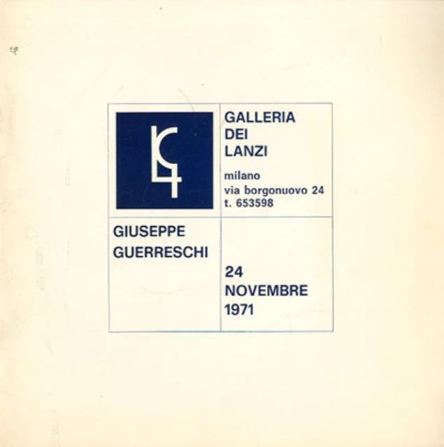 [16] p. : ill. ; 24 x 24 cm. Catalogo della mostra del pittore e incisore italiano, Giuseppe Guerreschi, tenutasi a Milano il 24 novembre 1971 alla Galleria dei Lanzi. La mostra ha come soggetto "Ritratti di personaggi". Brossura editoriale (spillata), coperta in cartoncino flessibile plastificato lucido e colorato. All'interno numerose immagini in b/n. Codice libreria 2937.