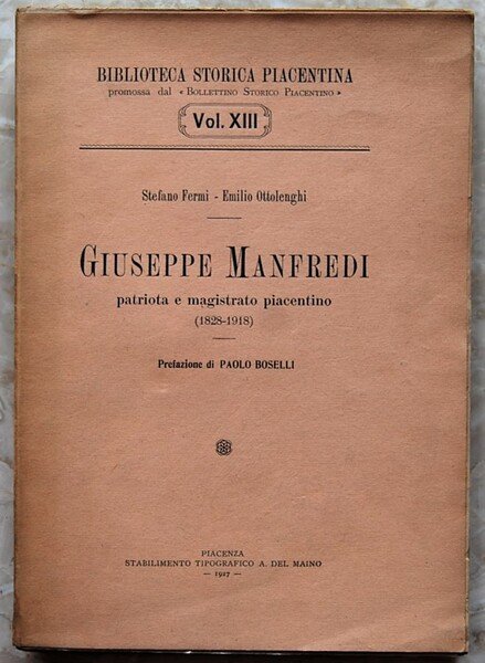 GIUSEPPE MANFREDI. PATRIOTA E MAGISTRATO PIACENTINO (1828 1918).