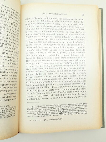 Giuseppe Mazzini Note autobiografiche a cura di Mario Menghini 2∞ edizione Le Monnier 1944