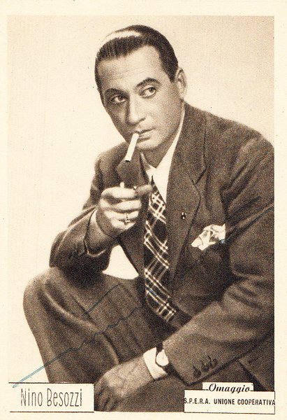 *Giuseppe Nino Besozzi. (Milano, 1901 – 1971). Attore italiano. Cartoncino fotografico con autografo. Omaggio S.P.E.R.A. Unione Cooperativa.