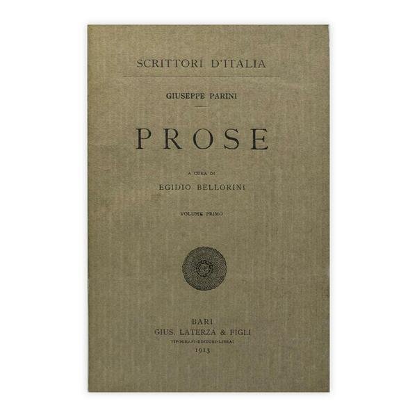 Autore: Giuseppe Parini Titolo: Prose Sottotitolo: A cura di Egidio Bellorini - volume primo Edizione: Gius. Laterza & Figli Editori 1913 Dimensioni: 14 x 22 cm c.a. Pagine: 384 Copertina: Brossura Condizioni: Ottime come da foto