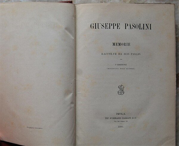 GIUSEPPE PASOLINI. MEMORIE. RACCOLTE DA SUO FIGLIO.