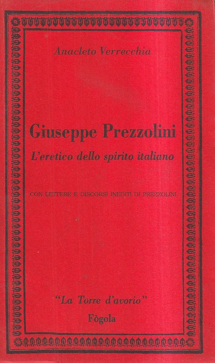 Prima edizione. Collana "La torre d'avorio", 46 - Brossura editoriale con bandelle, 275 pagine con tavole in bianco e nero fuori testo. Include lettere e discorsi inediti di Prezzolini. Lievi segni d'uso esterni, nel complesso ottima copia di un'edizione non comune -- Verrecchia disegna un vivace, denso e affettuoso ritratto intellettuale dell'amico più anziano. L'eretico Prezzolini - tanto eretico da proclamarsi conservatore in un paese dove nessuno si dichiara per tale - ha trovato in Verrecchia il suo Plutarco: uno spirito in parte affine, capace di misurarsi dialetticamente - con la sua complessità, con la sua acutezza e con la sua fresca moralità. Completano il volume le lettere inviate da Prezzolini al torinese Giannotto Perelli, amico anche di Piero Gobetti.