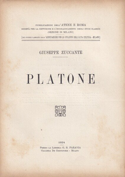 *GIUSEPPE ZUCCANTE. Platone. 1924