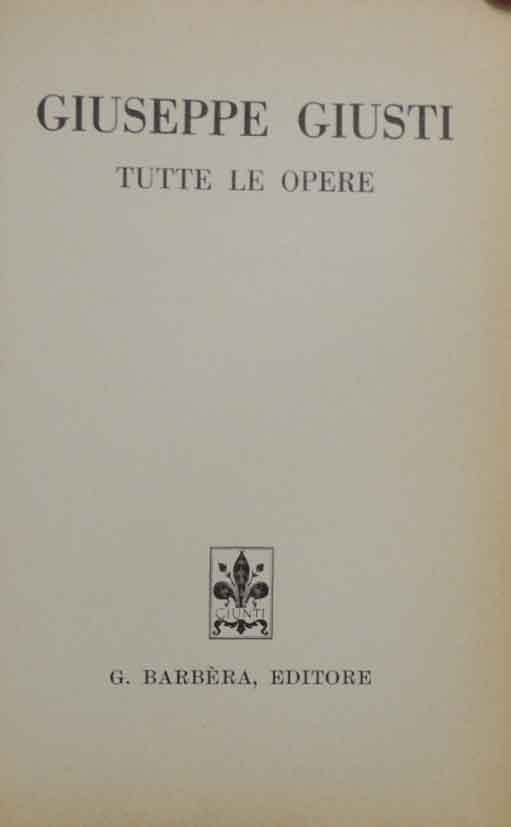 Giuseppe Giusti, Tutte le opere, G. Barbera Editore, Firenze 1968, pp. 608, cm 19, legatura in similpelle ed. con titoli al dorso. Carta lievemente ingiallita, per il resto perfetto.