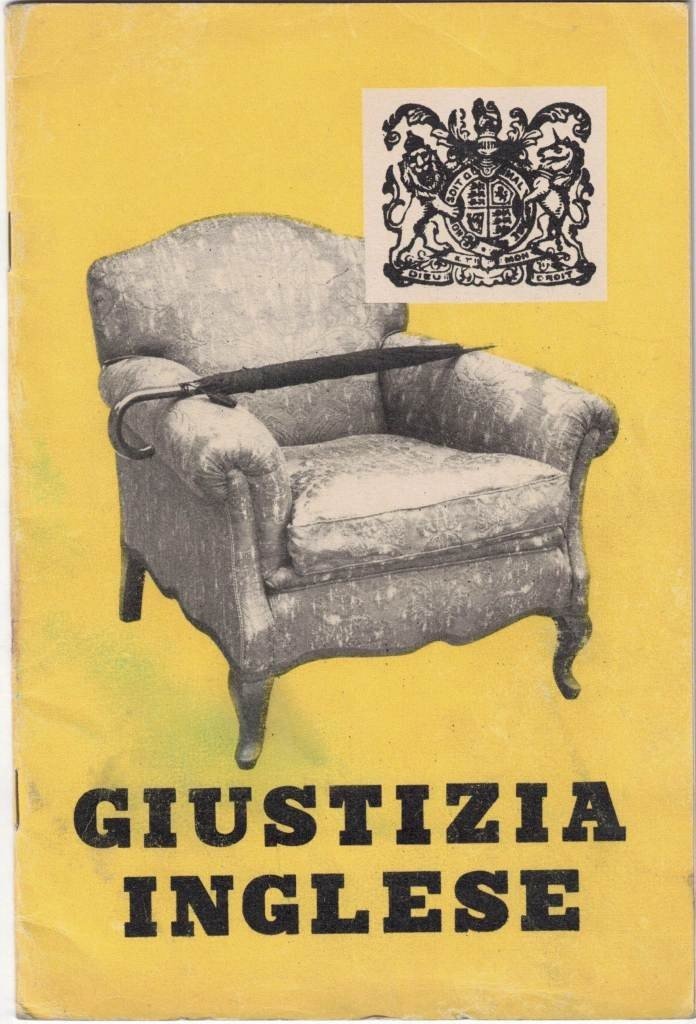 Giustizia inglese. Vessazioni e arbitri nel Mediterraneo, s.n., s.l. (ma stampato a Roma, presso il S. A. Istituto Romano di Arti Grafiche di Tumminelli) 1940 XVIII, pp. 31, ill. b.n., cm 22, rilegatura con punto metalico. Opuscolo anonimo di propaganda antibritannica. Minime tracce d’uso, per il resto ottimo.