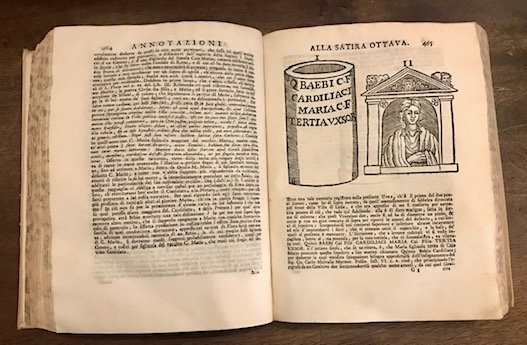 8vo (cm. 22,5), 910 pp., 1 c.nn. Con alcune illustrazioni n.t. e 5 tavv. incise su rame f.t. Testo latino ed italiano. Legatura coeva in pergamena rigida con titolo oro su tassello in pelle al ds. Tagli colorati. Provenienza: ‘Biblioteca Benedetto Marchese Polesini - Parenzo’ (ex libris araldico al contropiatto anteriore e timbretto sulla carta d’occhietto). Altro ex libris ‘Umberto Antonio Gandini’ al contropiatto. Antica firma di appartenenza in parte cassata al frontespizio. Esemplare molto fresco ed in eccellente stato di conservazione. Cfr. Gamba (n. 2276): ‘Piuttosto che traduzione, può reputarsi parafrasi accompagnata da lungo ed erudito Commentario’.