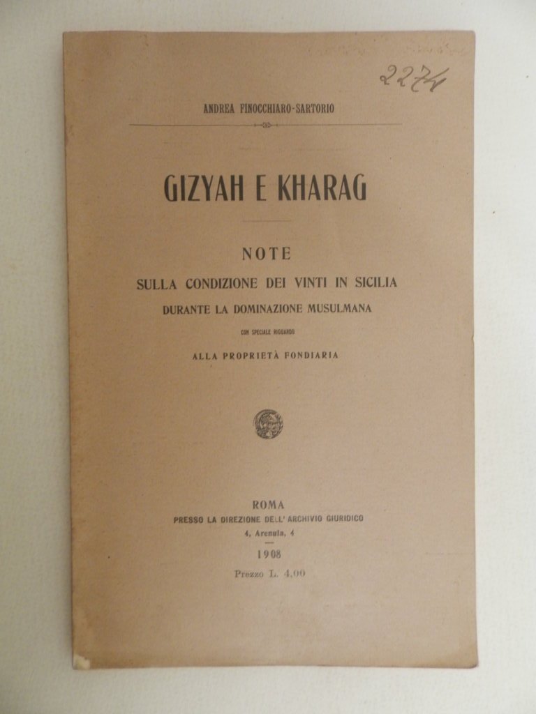 Gizyah e Kharag. Note sulla condizione dei vinti in Sicilia durante la dominazione musulmana con speciale riguardo ala proprietà fonfiaria