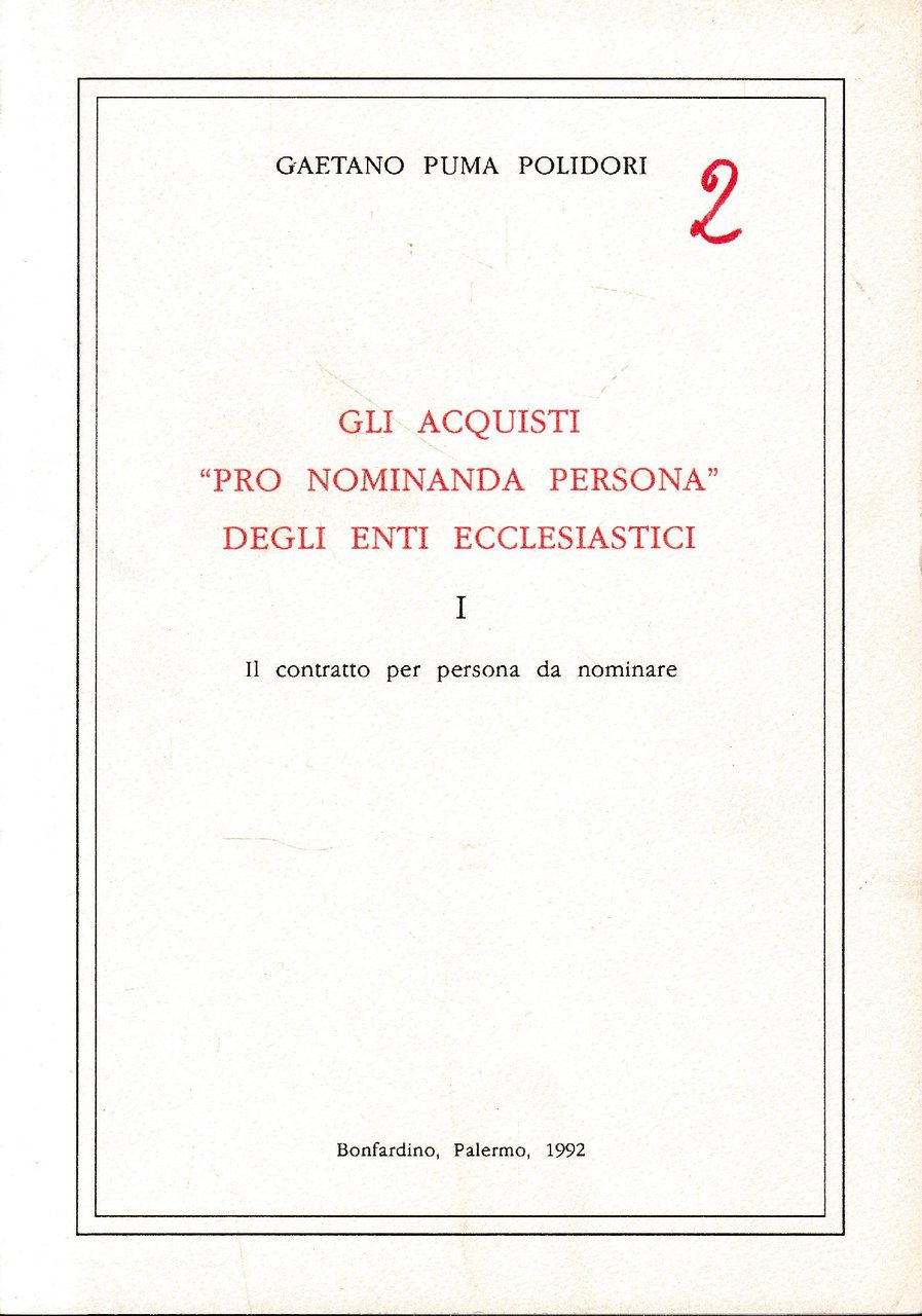 Gli acquisti pro nominada persona degli enti ecclesiastici, I.