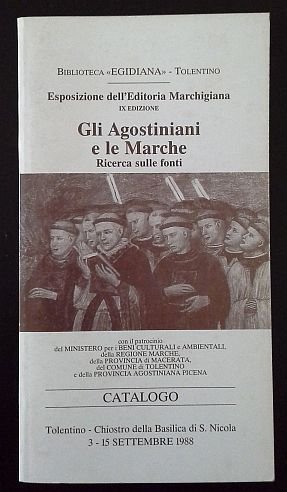 In 8? (cm 22), Brossura, pagg.17 Catalogo della IX Ediz. Dell'Esposizione dell'Editoria Marchigiana (Tolentino - Chiostro della Basilica di S. Nicola, 3-15 settembre 1988), buon es. Prima ed unica edizione