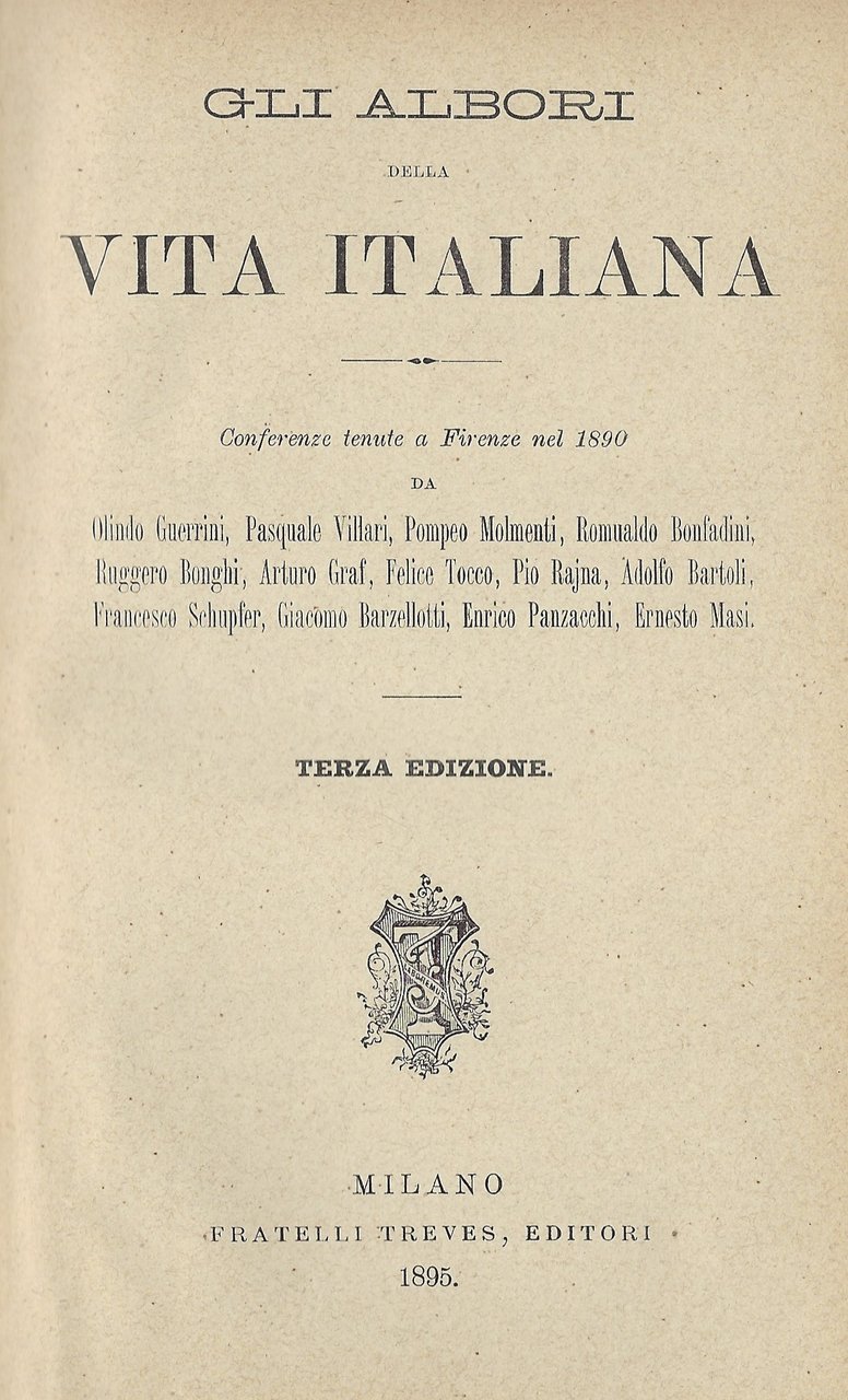 Terza edizione di questa importante raccolta di saggi pubblicata a cura dei Fratelli Treves, contiene contributi di Guerrini, Villari, Molmenti e numerosi altri.