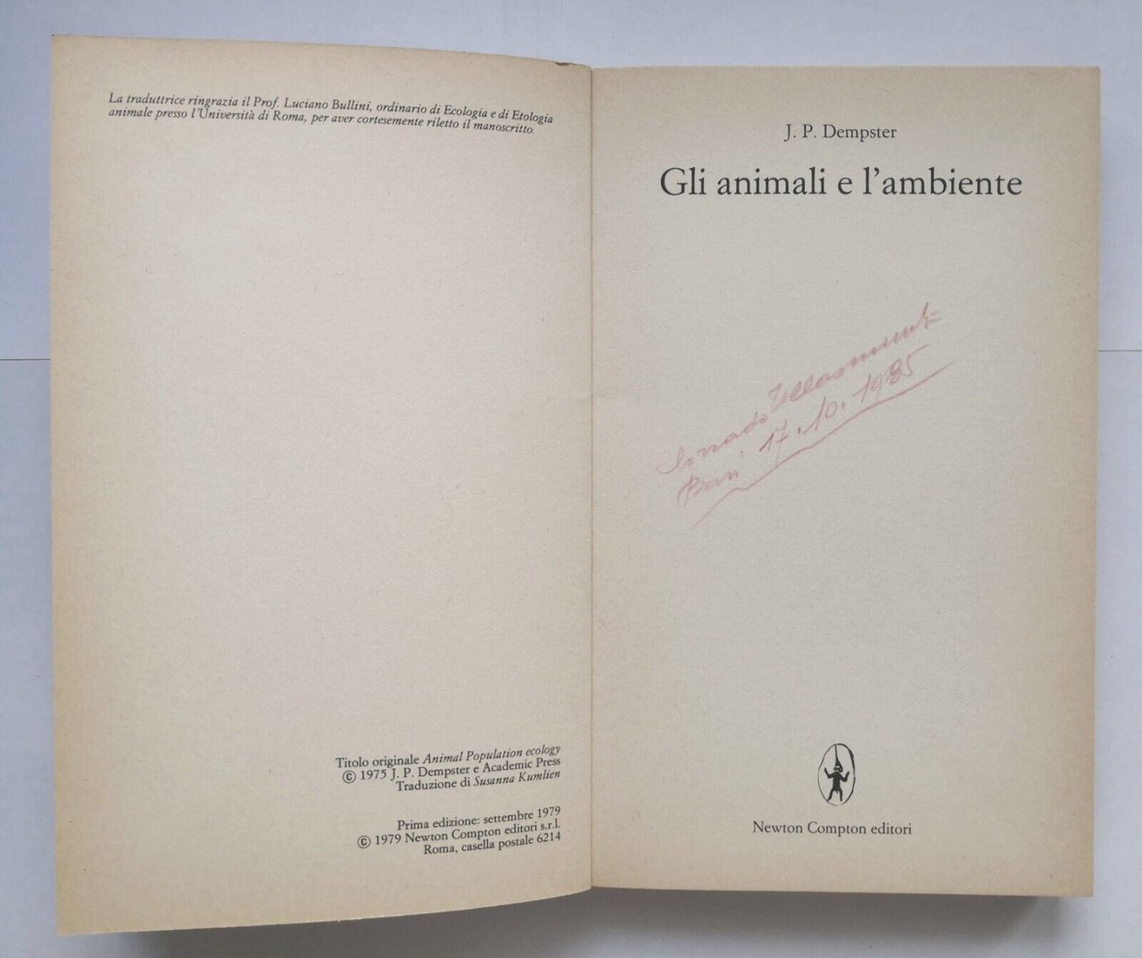 GLI ANIMALI E L'AMBIENTE di Dempster 1979 Newton Compton Libro ecologia etologia