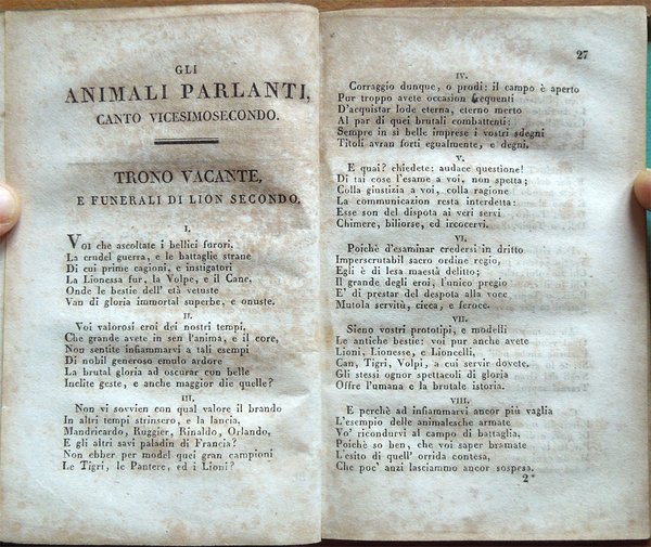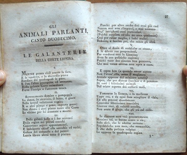 Gli animali parlanti, poema epico diviso in ventisei canti