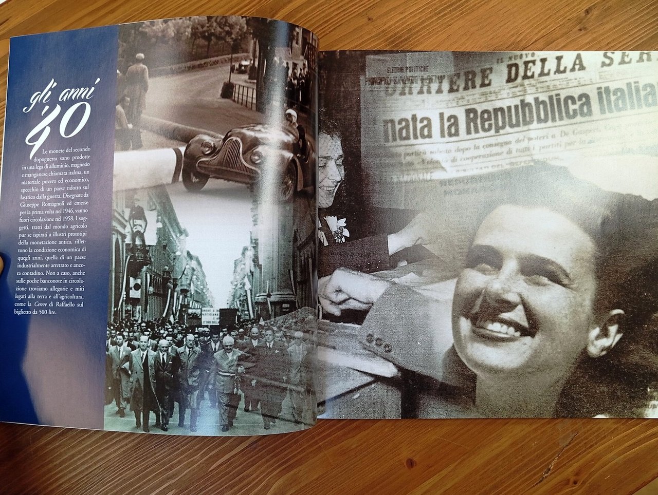 Brossura editoriale in formato quadrato grande (30x30 cm circa), 64 pagine con grandi riproduzioni a colori delle lire in monete e banconote. Esemplare in ottime condizioni.