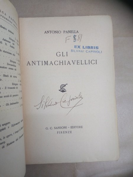 Collana Biblioteca storica Sansoni, VIII. Un volume di 135 pagine, brossura editoriale. Dimensioni: 16x24 cm. Tracce d'uso alla brossura (piccole mancanze ai margini e al dorso). Timbro di ex-libris e firma di possesso alla pagina bianca e a quella del titolo.