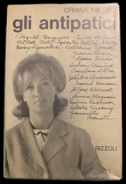 18,7x12 cm; 382, (2) pp. Legatura editoriale in piena pelle con impressioni sul dorso, sovracoperta ill. con ritratto di una giovane Fallaci, il tutto protetto da soppracoperta plastificata. Prima edizione stampata il 9.10.1963 di questa celebre raccolta di interviste a personaggi celebri e potenti realizzati dalla controversa scrittrice e giornalista fiorentina Oriana Fallaci. Opera assai rara da reperirsi in queste ottime condizioni di conservazione. ESEMPLARE RARO.