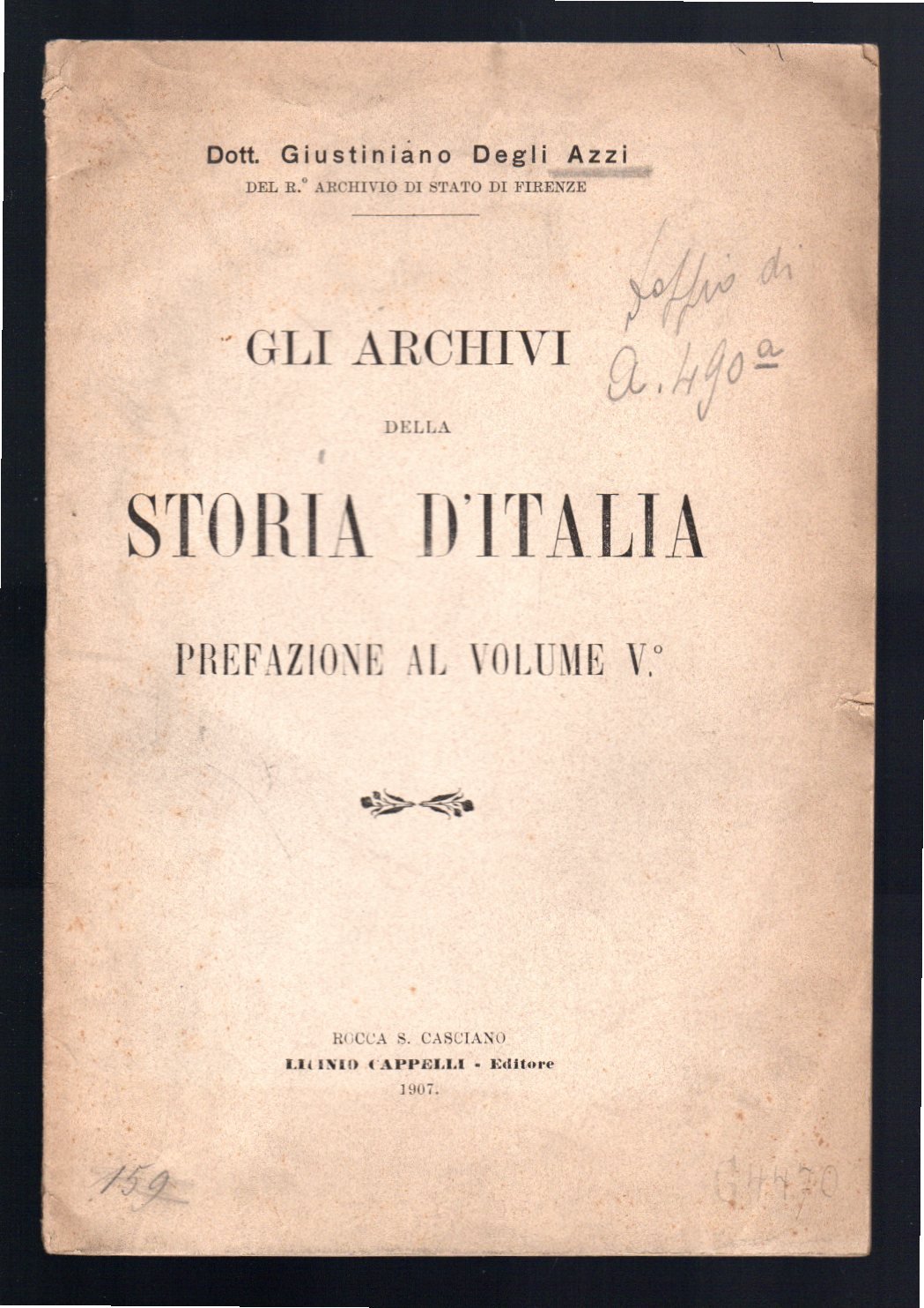 Gli archivi della storia d'Italia. Prefazione al volume V