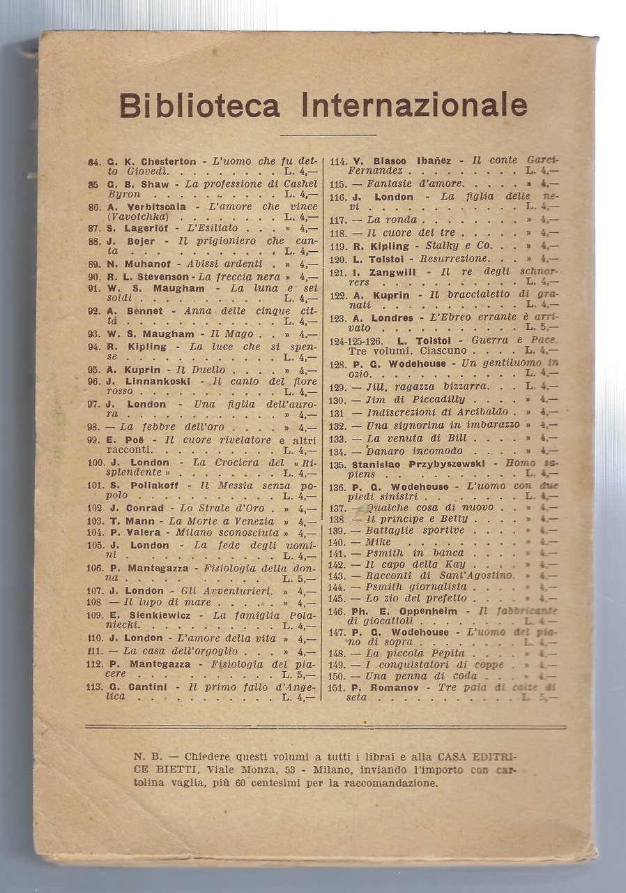 Brossura editoriale un po' usurata, con pieghette e bruniture alla coperta.