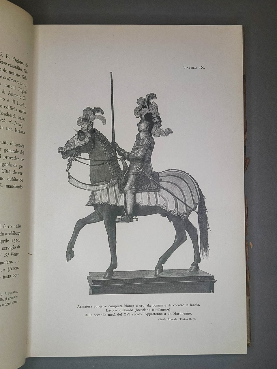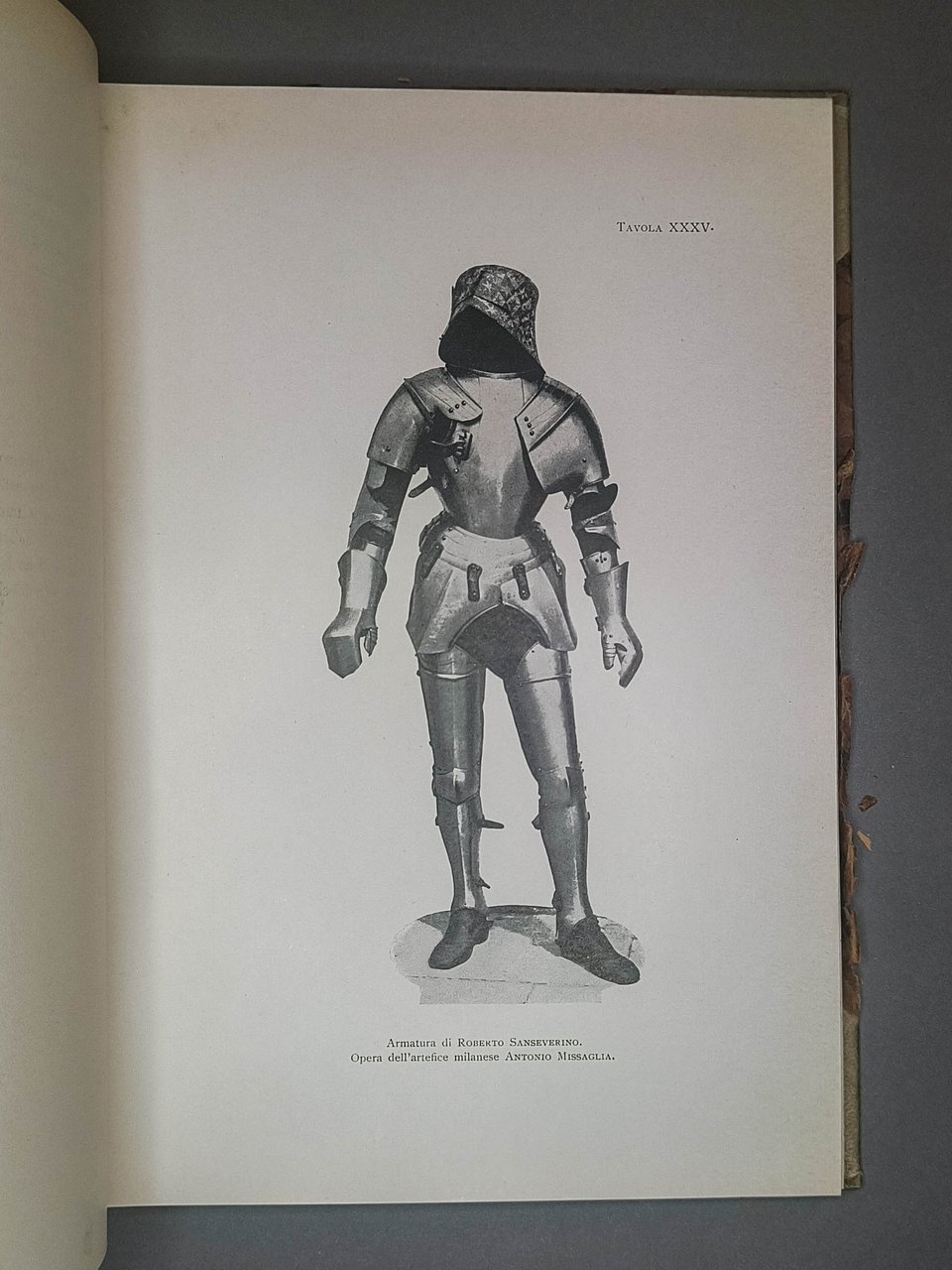 Legatura in mezza pergamena, piatti danneggiati ai bordi (altrimenti ottimo stato di conservazione). Dorso nervato, con autore e titolo in oro. LVI tavole in bianco e nero fuori testo e 12 figure in bianco e nero nel testo. Dettagliatissima pubblicazione sugli armaroli milanesi Missaglia. Ex libris Oreste Sartorio.