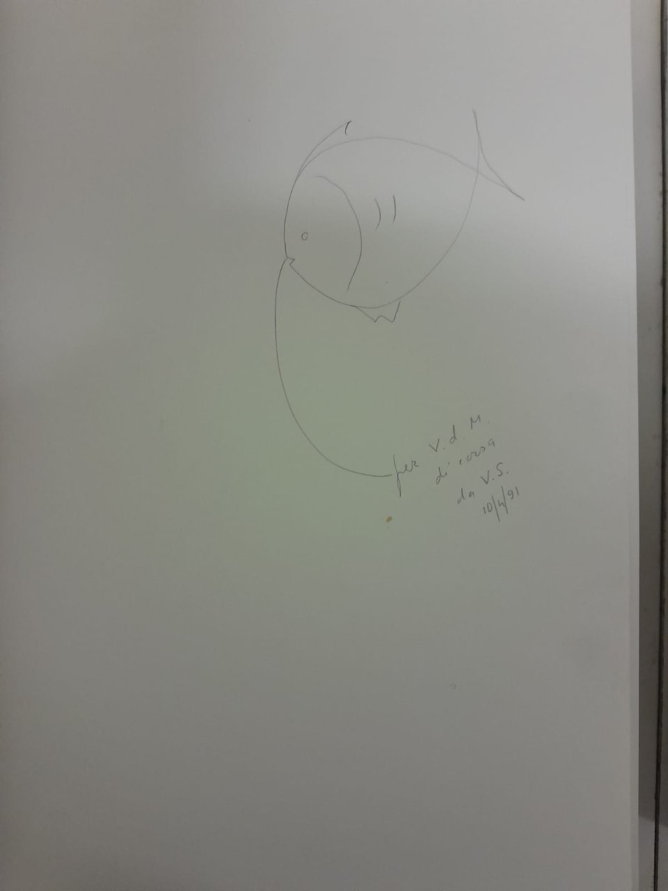 Nel primo risguardo dedica di Vanni Scheiwiller con il classico disegno del pesce a V.d.M. datato 10.4.91 ( vedi foto)