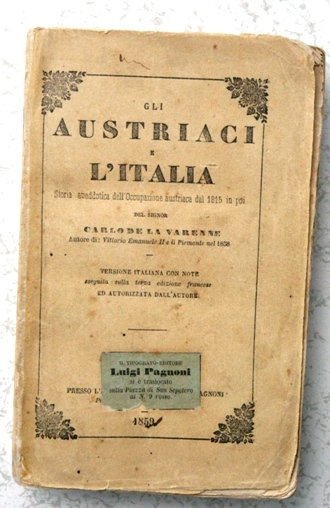 storia aneddotica dell'Occupazione austriaca da 1815 in poi; versione italiana con note eseguita sulla terza ediz. francese; pref. di Anatolio de la Forge; copertina morbida, pag 330 in ottimo stato.