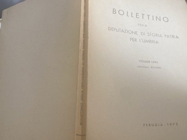 <p>CODICE 104 SCATOLA ARALDICA 4</p>, , <p>BOLLETTINO DELLA DEPUTAZIONE DI STORIA PATRIA PER L'UMBRIA </p>, , <p>VOLUME LXXII FASCICOLO SECONDO</p>, , <p>PAGINE 202</p>, , <p>GLI EBREI A CITTA DI CASTELLO</p>, , <p>SFOGLIO DOCUMENTARIO DEL DE CLARITE PERUSINORUM</p>, , <p>IL PROCURATORE FISCALE BENEDETTO VALENTI I CONCISORI DEL SUO TEMPO </p>, , <p>STATUTI DI CONFRATENITE RELIGIOSE DI PADOVA NEL MEDIO EVO LA CASACCE L'OSPEDALE DI CENTO NEI SECOLI LA CONFRATEERNITA DEI DISCIPLINATI E LA CHIESA DEL CARLO IN LONATO ETC.</p>,